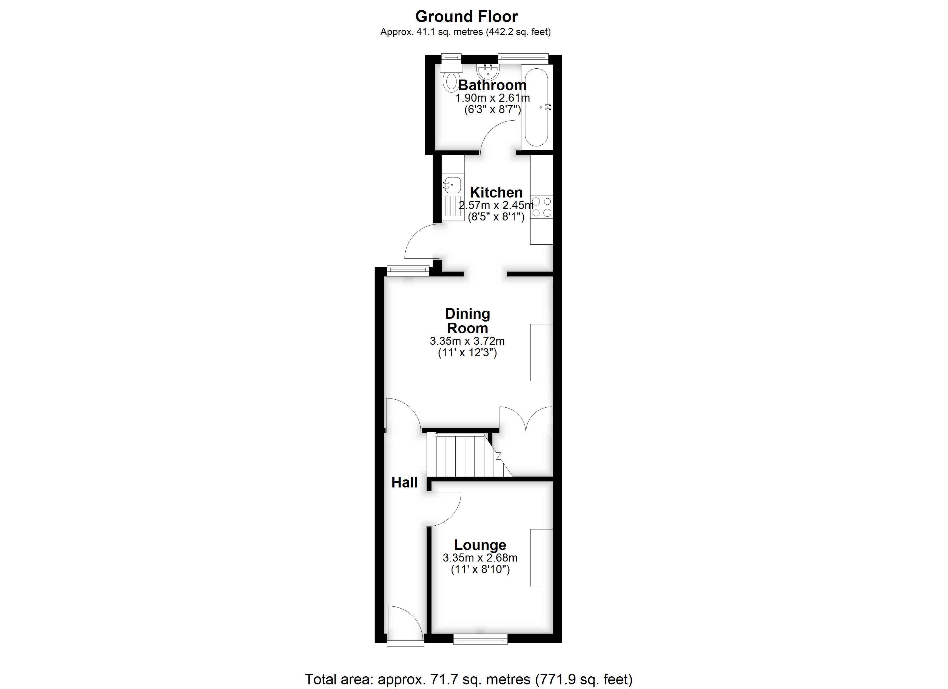 Bathroom             2.61m (8'7") x 1.90m (6'3")