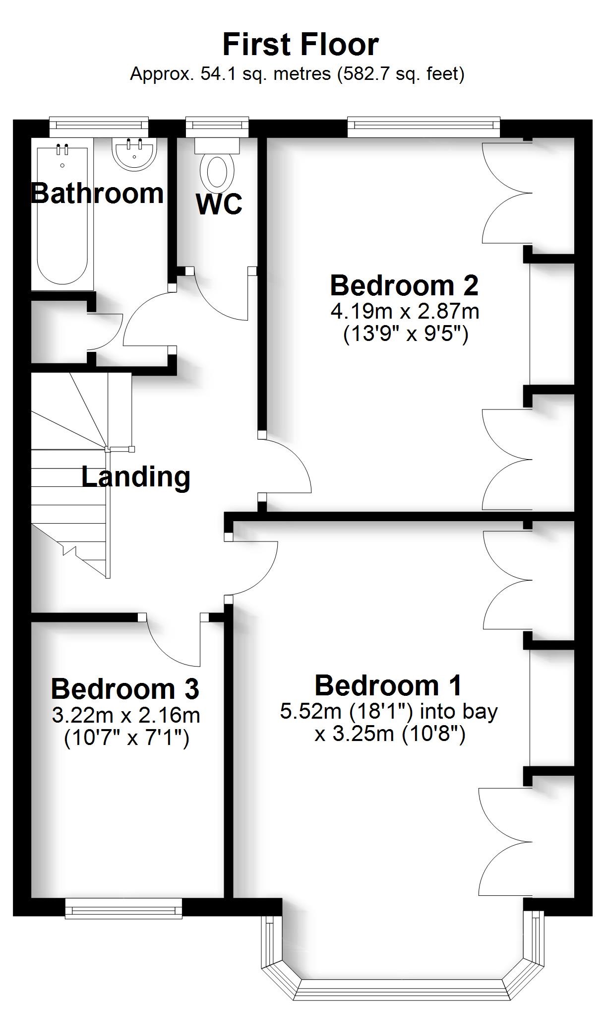 Bedroom 1 5.51m (18'1") into bay x 3.25m (10'8")