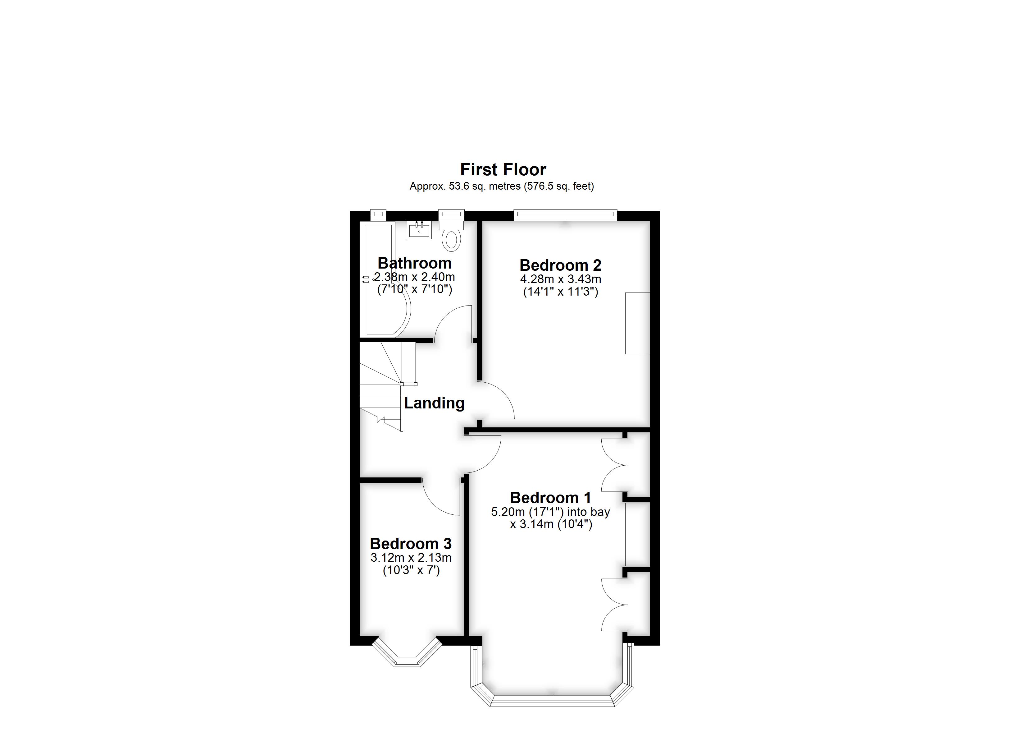 Bedroom 1            5.20m (17'1") into bay x 3.14m (10'4")