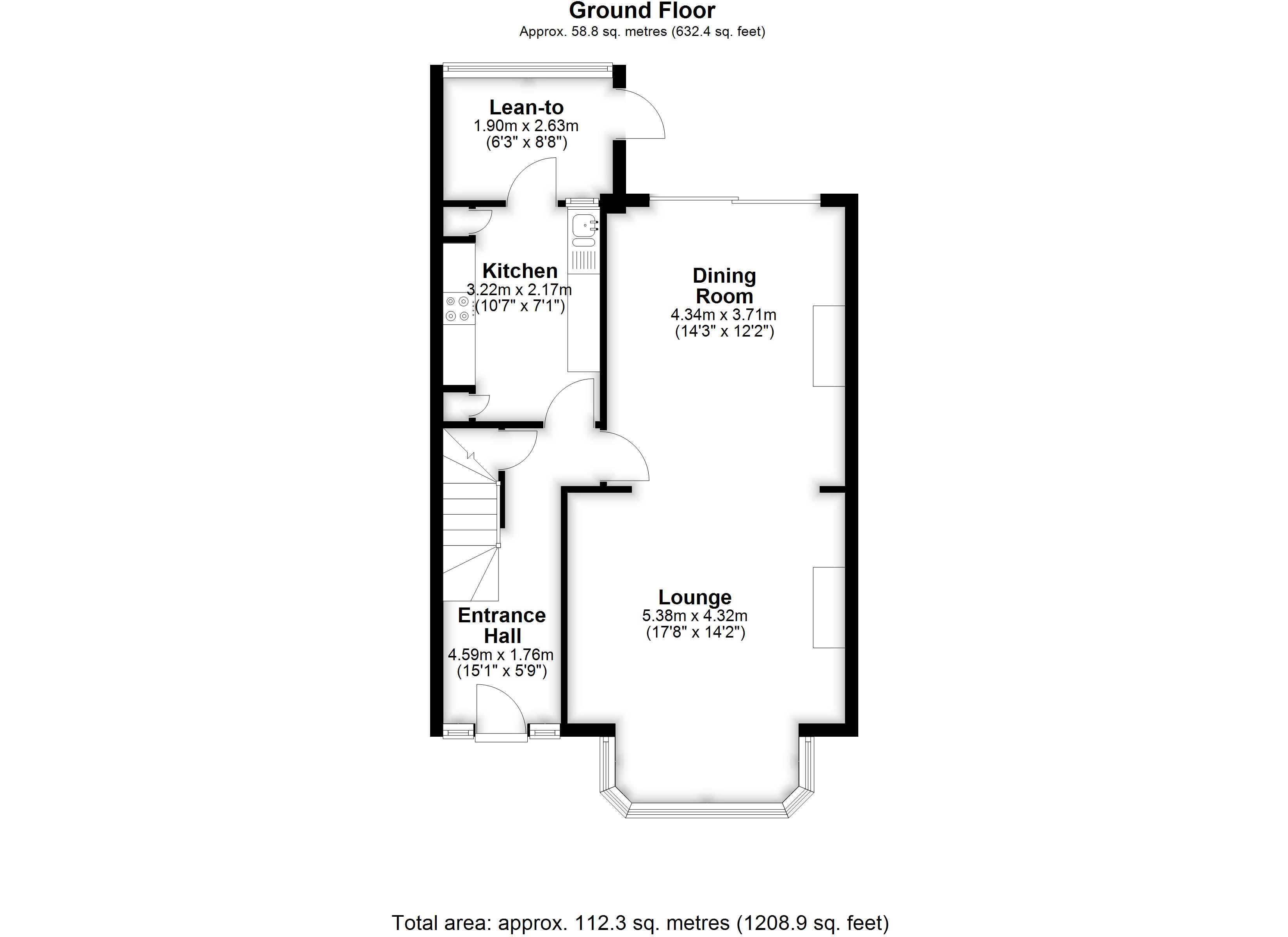 Lounge                 5.38m (17'8") x 4.32m (14'2")