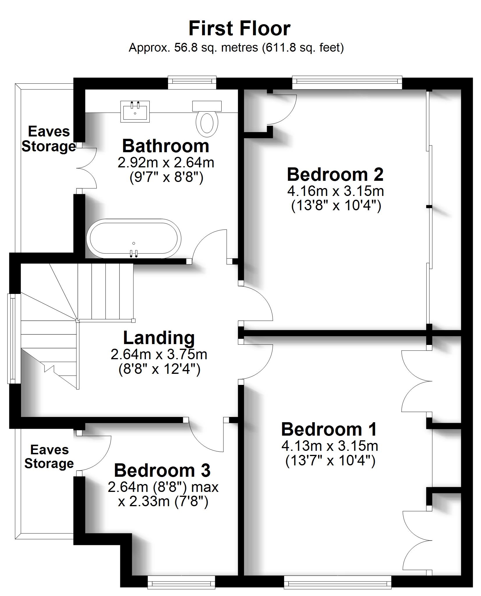 Bedroom 1 4.13m (13'7") x 3.15m (10'4")